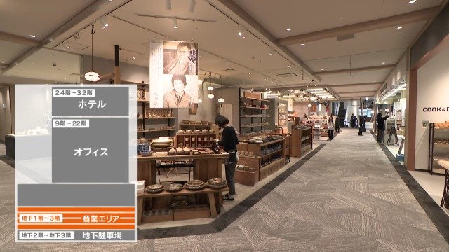 オープンを前に19日、報道陣向けに地下1階から地上3階の商業エリアの内覧会が行われ、一足先に全てのテナントがお披露目されました。
