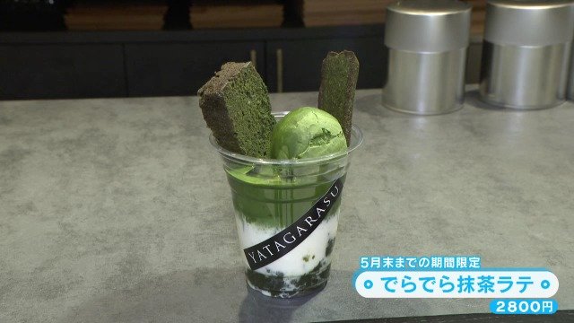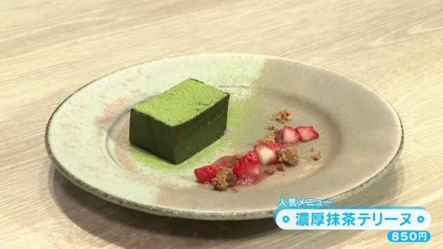 今池の店舗での人気メニュー「濃厚抹茶テリーヌ」のほか、注文を受けてからたてた抹茶ラテの上に、抹茶のスイーツを乗せた5月末までの期間限定メニューも!