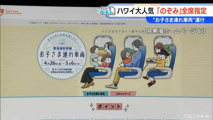 また、東海道新幹線では4月26日から5月6日まで、一部の「のぞみ」指定席に「お子さま連れ車両」を設定。