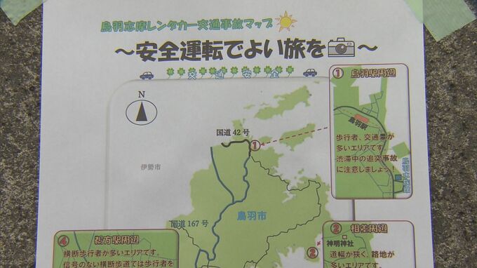 過去に鳥羽市と志摩市で起きたレンタカー事故の情報が記載された地図を、店から利用者に渡してもらうためで、600部配りました。