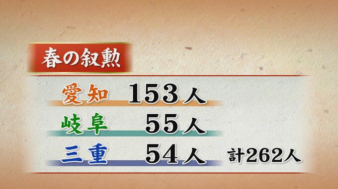 東海3県では、顕著な功績を挙げた人に贈られる「旭日章」と社会のために長年従事した人に贈られる「瑞宝章」に合わせて262人が選ばれました。