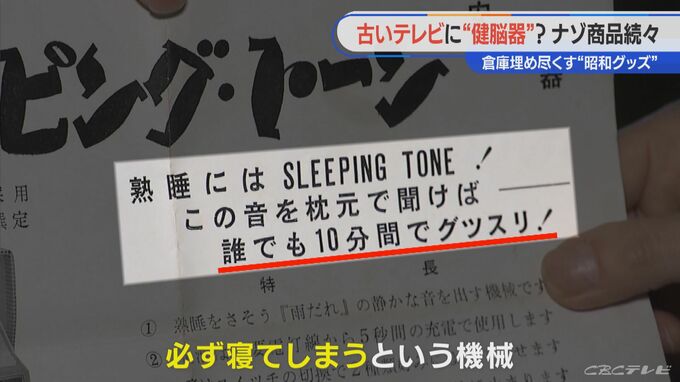「この機械何をするものかというと、安眠機。これを使うと10分で誰でもグッスリということで必ず寝てしまうという機械」
