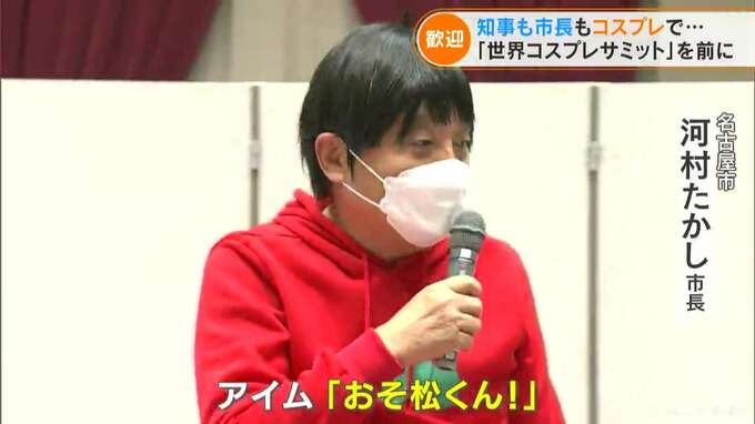 「おそ松くん」のコスプレで表敬訪問を歓迎しました。