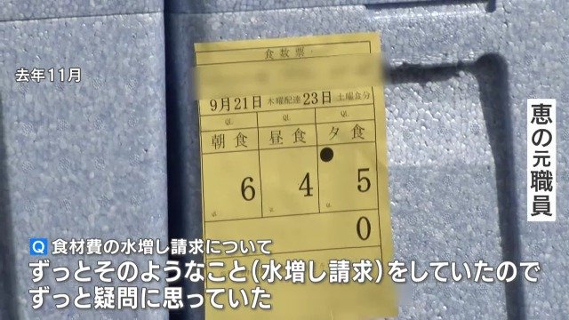 「ずっとそのようなこと(水増し請求)をしていたので、ずっと疑問に思っていた。(徴収金額は)1人あたり食費と日用品で2万8000円くらい。10人いれば28万円(徴収)のところ、10万円しか(経費に)おりてこない」