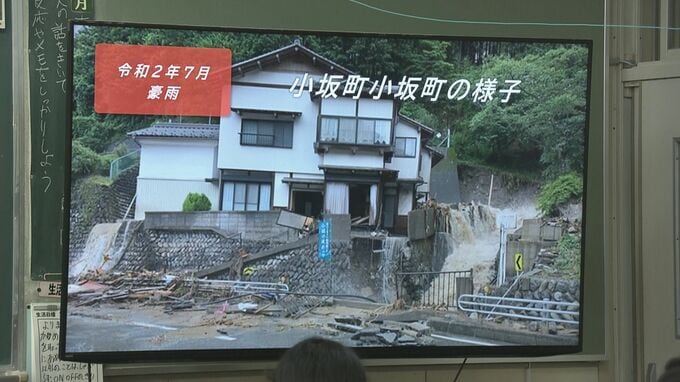 生徒の多くは4年前の豪雨を経験していて、真剣な表情で耳を傾けていました。