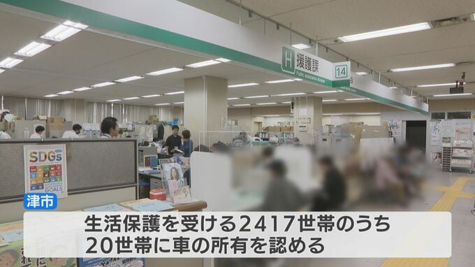 「生活保護受給者の車の所有」をめぐっては、自治体によって運用にバラつきがあるのが実態で、鈴鹿市のすぐ隣の津市では、2417世帯のうち20世帯に車の所有を認めています。