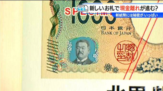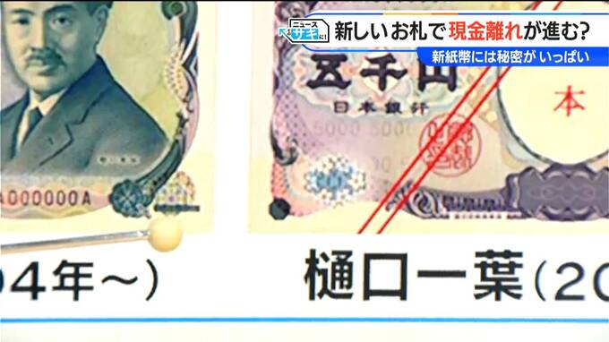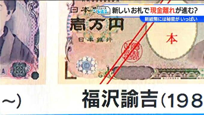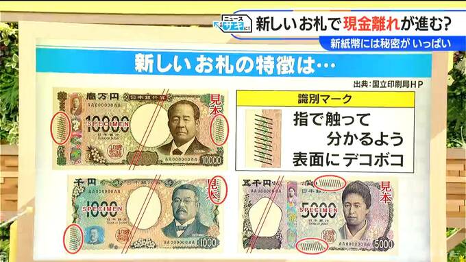 ちなみに旧タイプの、今発行されているものですが、このマークが券種ごとに違ったんです。一万円はお札の隅にカギ括弧、「L」のようなマーク、5千円は丸、「●」のようなマーク、千円が横棒「―」のような印なんです。新しいお札は、すべて同じマークで、お札ごとに位置が変わって、大きさも前より大きくなって、わかりやすくなっているということです。