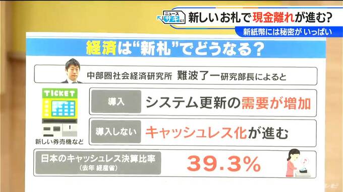 そしてもう一つは、やはり経済だと思うんです。経済を動かすこと、新札でどう動くのか、中部圏社会経済研究所 難波了一研究部長に伺いました。例えば新しいシステムを導入するとなると、その更新の需要が増加します。新しい券売機を作る会社、それを売る会社、経済が動いてきます。