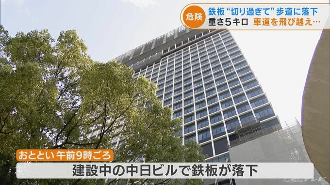 同じ工事現場でまた事故が。おととい午前9時ごろ、中区栄で建設中の中日ビルで、高さ140メートル、30階部分から鉄板が落下しました。