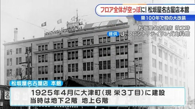 松坂屋名古屋店の本館が今の場所に建設されたのは1925年。当時は地下2階、地上6階建てでした。
