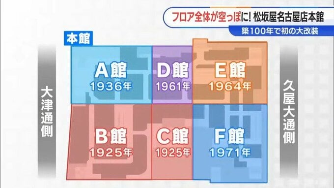 「理由が、松坂屋名古屋店は全部で6つの建物に分かれていて、5回の増築を繰り返してきた。一番古い建物がB館C館という建物」