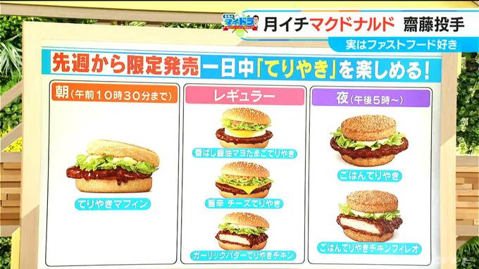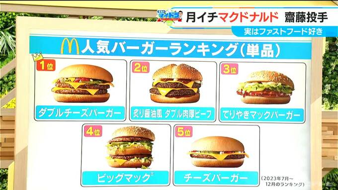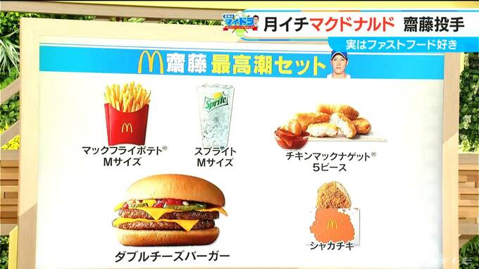 そして、きのう(4日)は宇佐見選手の行きつけチェーン店「鳥貴族」を「マイドラ」で取り上げて、勝手に“宇佐見セット”というものをご紹介しましたが、きょうもマクドナルドのメニューにはないんですが、“齋藤綱記 最高潮セット”を勝手にご紹介します。