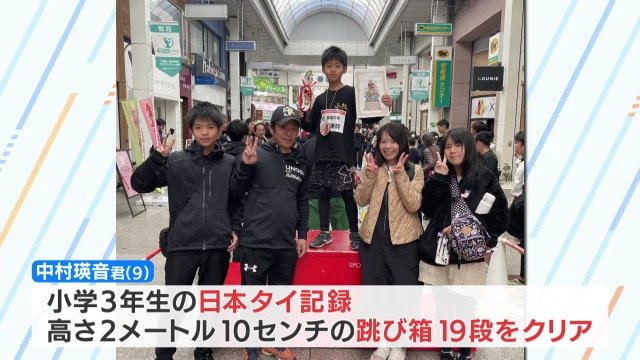 小学3年生では日本タイとなる高さ2メートル10センチの跳び箱19段をクリアし、小学3年生男子の部の日本一に輝いています。