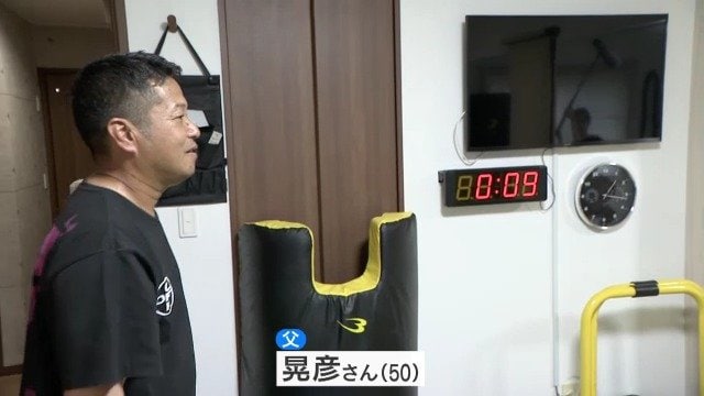 自宅の2階には、なんとトレーニングルームが! 相手をするのは、父の晃彦さん。そして、母の真理さんは食生活を支えようと、糖質オフのクッキーを作っています。