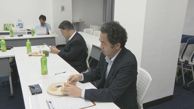 2次審査として7日午後3時から審査員6人による実食審査が行われました。試食しているのは、名古屋市内に本店を持つスイーツ店が応募したおやつのうち「和菓子部門」と「洋菓子部門」で1次審査を通過したあわせて20品。