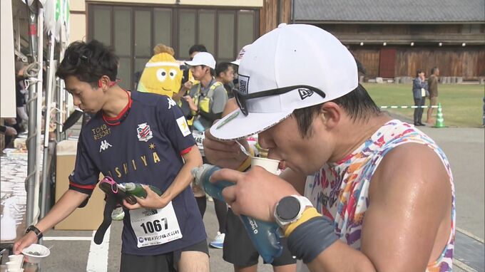 途中の給水所では地元特産のそばも振舞われ、ランナーが疲れを取っていました。100キロ部門ではスタートしてから7時間から8時間でゴールするランナーもいるということです。
