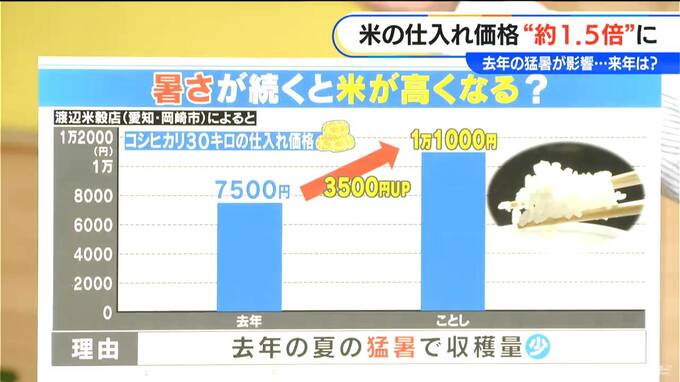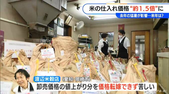 愛知県岡崎市にある渡辺米穀店によると、去年の10月から12月にかけてはコシヒカリ30キロの仕入れ価格が7500円だったのが、わずか半年で3500円もアップしているということなんです。