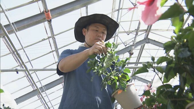 愛知県田原市で南国ムード漂う夏を連想させる花、ハイビスカスの出荷が最盛期を迎えています。和地町にある荒木洋志さんのハウスでも、出荷に向けた作業が進んでいます。