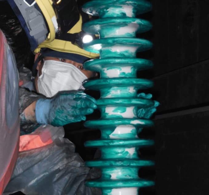 JR東海は身体的負担も大きい作業の省力化を目指し、絶縁性能を維持する効果に優れたシリコーンゴムでコーティングした塗り替え作業が不要の「コーティングがいし」の導入を目指して2017年から日本ガイシと実証実験を重ねてきました。