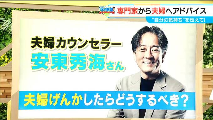 (若狭)これまで2000組の夫婦に寄り添ってきた夫婦カウンセラー・安東秀海さんに聞きました。「夫婦げんかしたらどうするべきか」ということですよ。