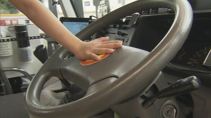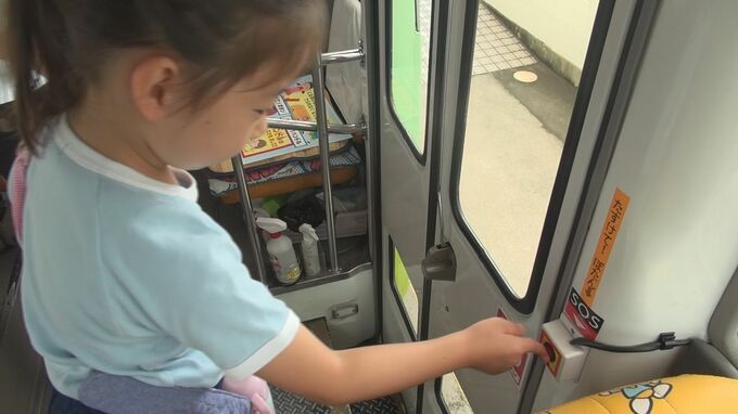 不幸な事故から園児も自衛。バスへの置き去りを防ぐ訓練が行われました。