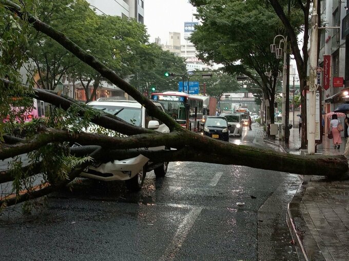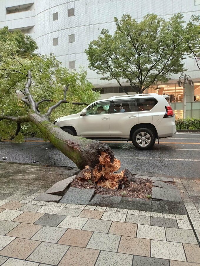この倒木で、赤信号で停止していた乗用車2台が、倒れてきた街路樹で破損しましたが、けが人はいないということです。