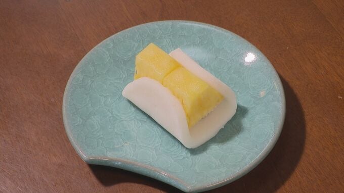 こちらは、棋聖戦の午後のおやつで挑戦者の山崎隆之八段が選びました。そのほか国産のパイナップルなどにこだわった「フルーツ羽二重」も「きた川」の人気のお菓子。