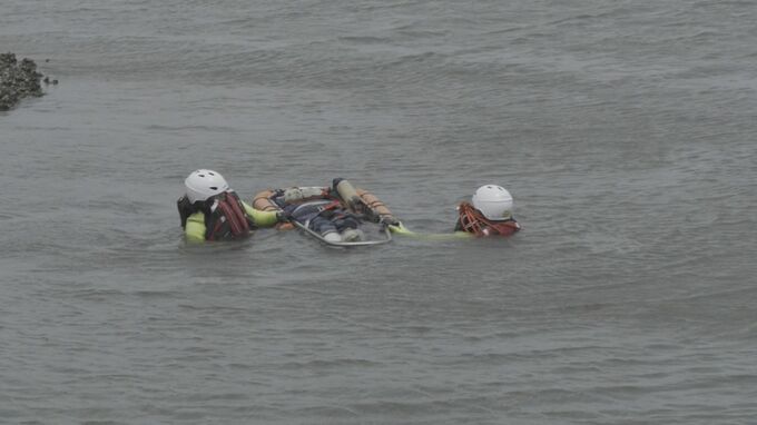 訓練は釣り人1人が海に落ち、助けようとした人と合わせて2人が行方不明になったという想定で行われました。