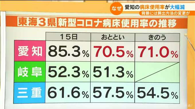 算出方法の見直しについて、愛知県は「コロナ専門病床の空き状況を正確に把握するため」としています。