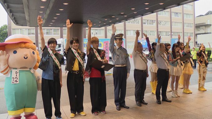 11日に名古屋市内で行われた出発式には名古屋発のアイドルグループ「BOYS AND MEN」のメンバーらが参加し、横断歩道を渡るときには手を挙げることや停止したドライバーに感謝を伝えることなどを呼びかけました。