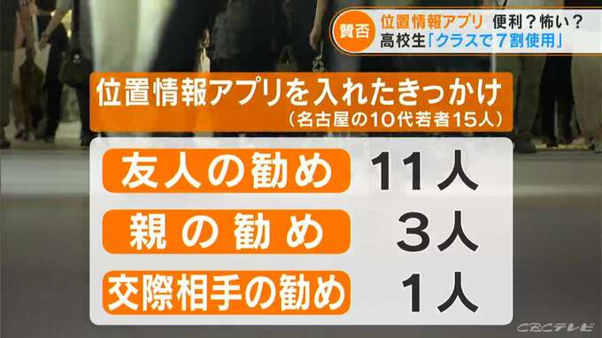GPS機能を使って、許可された相手の居場所を知ることができる、位置情報共有アプリ。使ったことがあるという10代の若者15人にアプリを入れたきっかけを聞いたところ、11人が「友人の勧め」、3人が「親の勧め」、1人が「交際相手の勧め」という結果になりました。