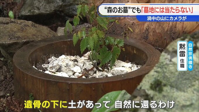 自然葬だという遺骨は、上から土をかぶせておらず、「埋められた」状態ではありません。住職は「森のお墓」と銘打って遺骨を受け入れていますが、「墓地にはあたらない」と強調します。