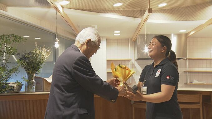 大きな拍手の中、登壇したのは、パリオリンピックセーリング女子49erFX(フォーティーナイナーエフエックス)級代表の田中美紗樹選手(26)です。