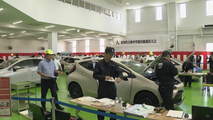 愛知県小牧市で、自動車整備士たちが技術の正確性やスピードなどの整備技能を競う大会が行われました。