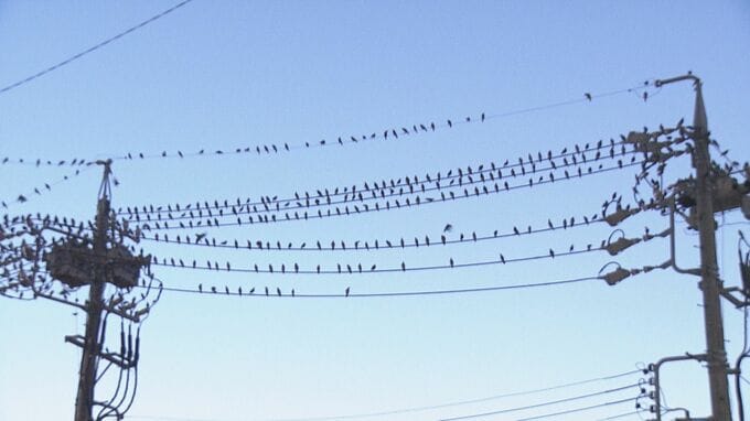 街路樹や電線に止まる鳥・鳥・鳥。異様な数に、思わず動画を撮る人も。