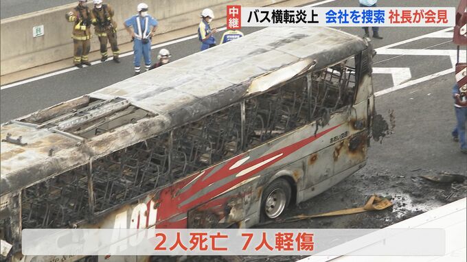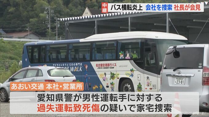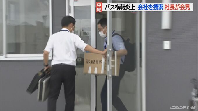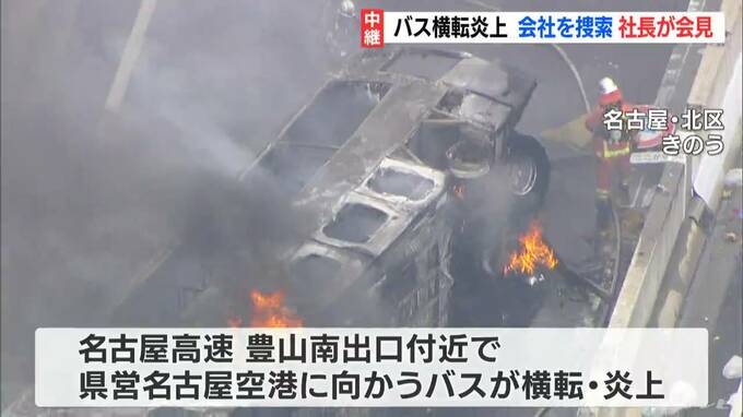 22日、県営名古屋空港に向かうバスが横転・炎上し、9人が死傷した事故で、警察は男性運転手に対する過失運転致死傷の疑いで、バスの運行会社を家宅捜索しました。