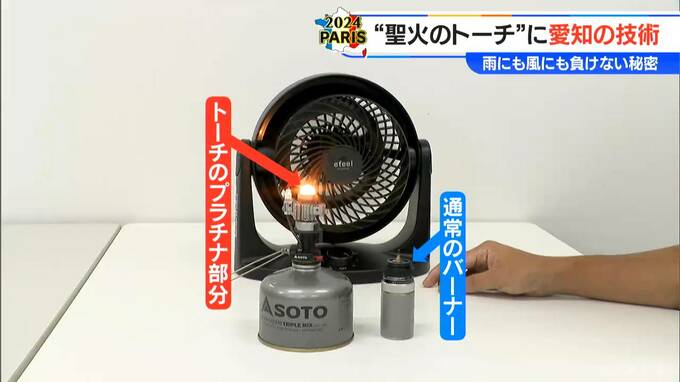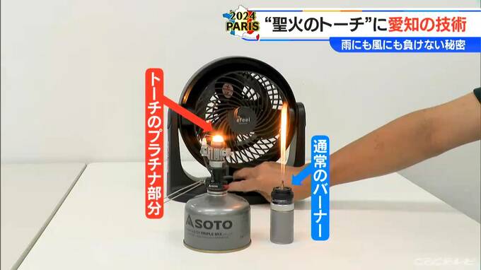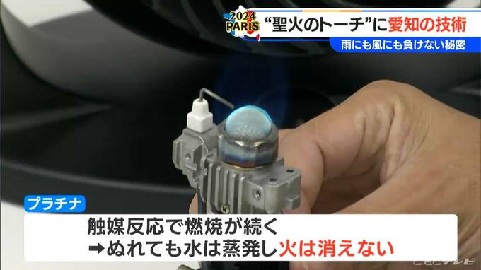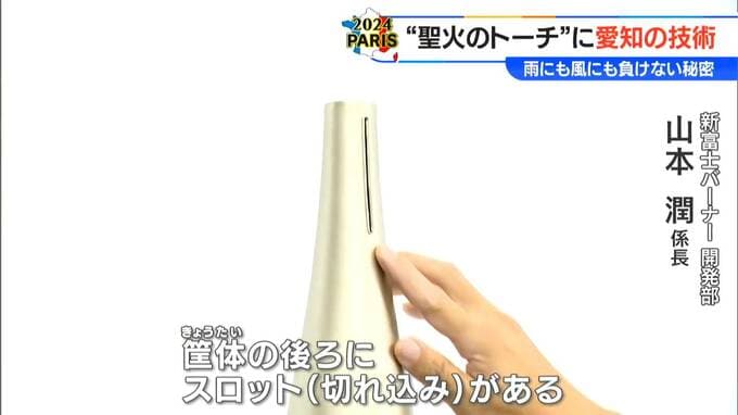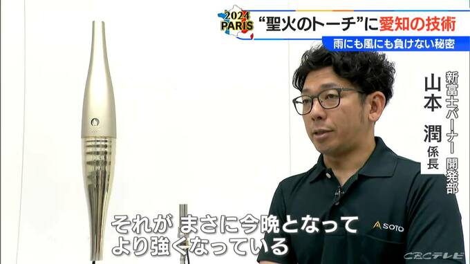 “メイドイン愛知”の技術が支えるトーチ。史上初の屋外での開会式で、聖火台に灯される瞬間にも注目です。