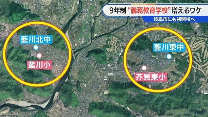 JR岐阜駅から北東に10キロ以上離れたこの地域には、子どもの数が減っている小中学校がそれぞれ2つあります。