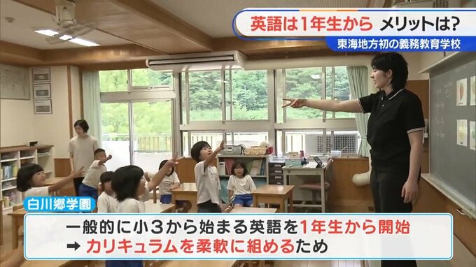 白川郷学園では、1年生から英語の授業があります。一般的に英語の授業は小学3年生から始まりますが、義務教育学校ならカリキュラムを柔軟に組むことが可能です。