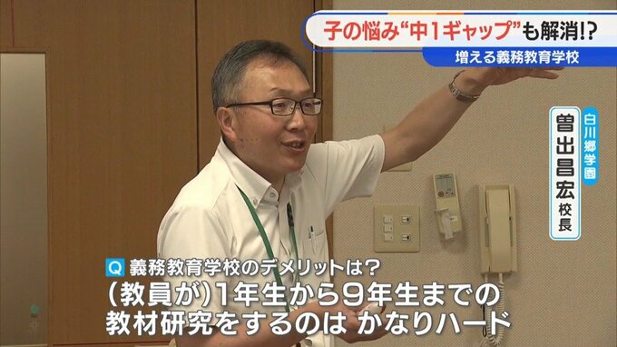義務教育学校のデメリットはあるかの問いには「(教員が)1年生から9年生までの教材研究をするのは、かなりハード。そこの負担だけで、あとはメリットしかない」と答えます。