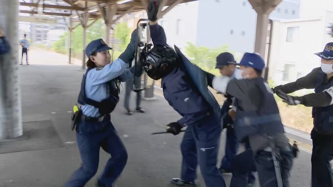1日、駅のホームで乗客らが無差別に切りつけられる事態を想定した訓練が愛知県半田市で行われました。