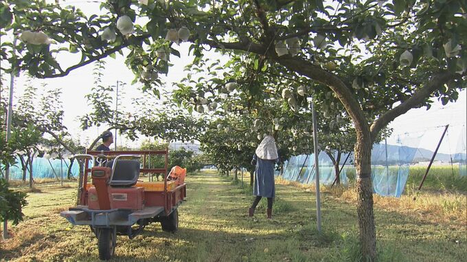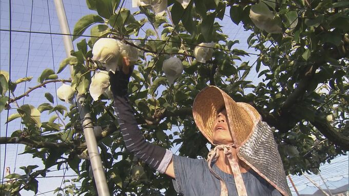 三重県玉城町で、さっぱりとした甘さが特徴の梨「なつしずく」の収穫作業が始まりました。