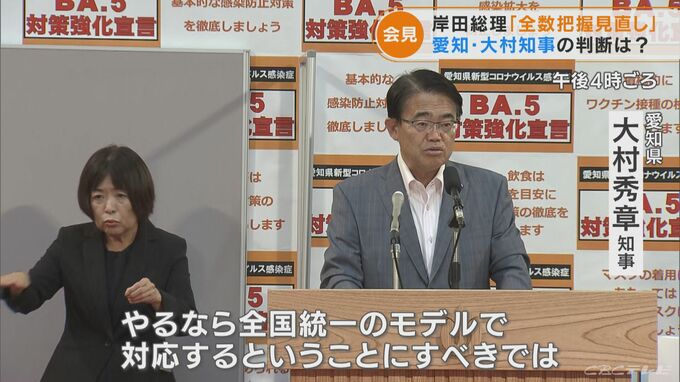 岸田総理の全数把握見直しの方針を受け、愛知・大村知事は24日午後4時ごろ会見で、次のように話しました。
