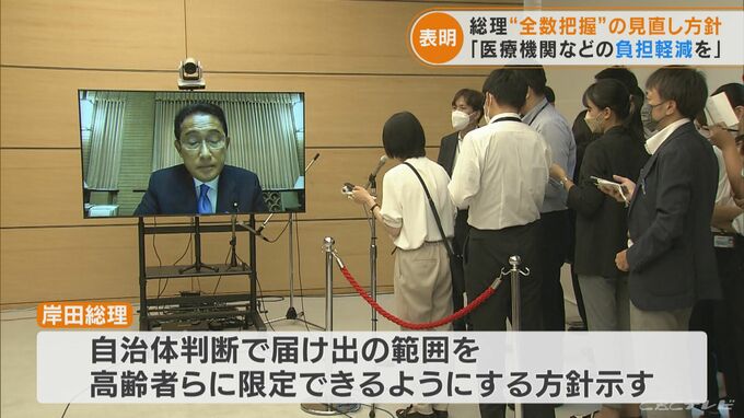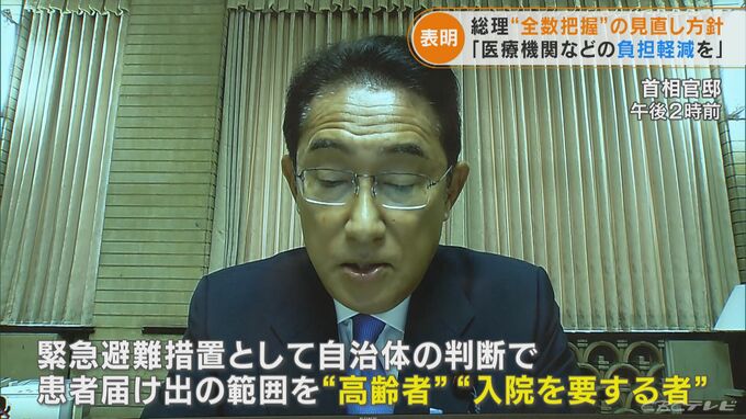 新型コロナ対策をめぐって24日午後、岸田総理が医療機関や保健所の負担軽減のため、感染者の全数把握の見直しについて、各自治体の判断で実施する方針を示しました。