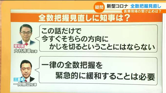 また三重・一見知事は「医療現場の負担の軽減や、患者が適切な医療を受けられることが重要であるころから、現状の感染状況を鑑みて、一律の全数把握を緊急的に緩和することは必要」とコメントしています。