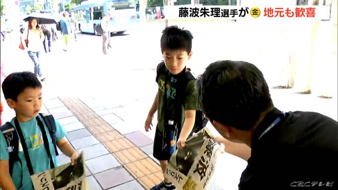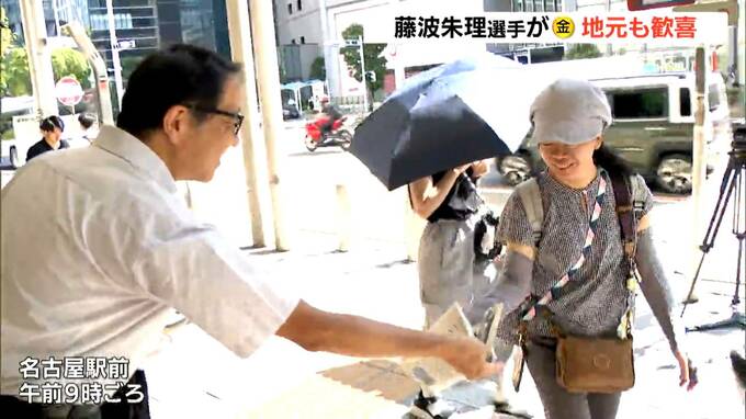 また名古屋駅前では号外が配られ、道行く人も藤波選手の金メダル獲得を喜びました。