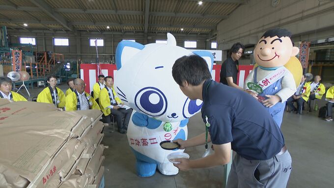 愛知県内で一番早く出荷された、あいち米の「あきたこまち」。弥富市にあるJAあいち海部の出荷場では、「あいち米」初出荷式が開かれ、JAあいち海部の広報大使「あまにゃん」が新米の品質検査などをしました。