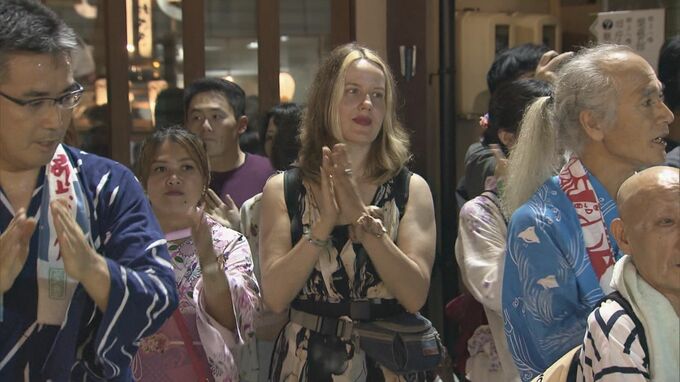 今月13日からは夜を徹して踊り続ける徹夜おどりが行われています。浴衣姿の地元の人や観光客らは手拍子や下駄の音を響かせながら踊りを楽しみました。