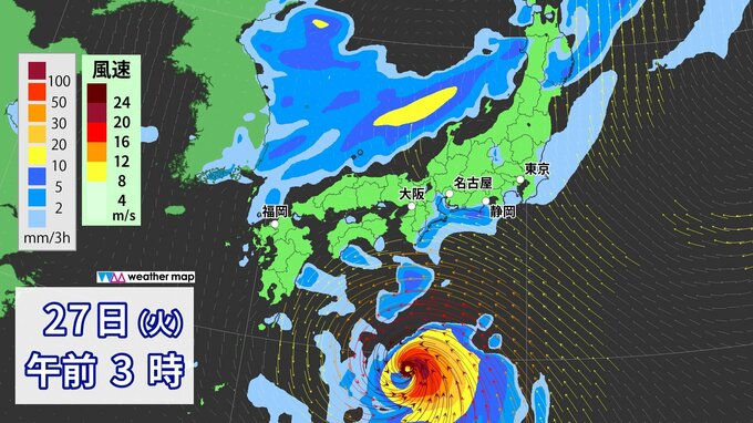 【台風情報】台風10号 サンサン 27日(火)~28日(水)ごろに東日本~西日本に直撃か 世界各国の予想は? この先の雨・風シミュレーション 2024年8月23日(金) 17:33 国内 天気 本州付近には湿った空気が流れ込むため、台風が接近する前から大雨になるおそれがあります。