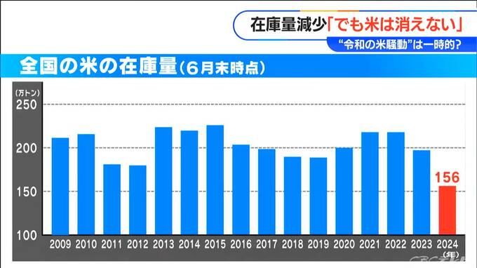 一方、こちらは米の在庫量。ことし6月末時点では156万トン。2009年からの15年間のデータでは最も在庫量が少なくなっているのです。では、適正な在庫量とは一体どれほどなのか?